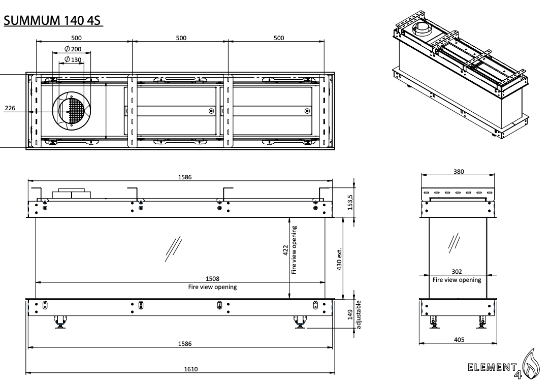 • Lijntekening Element4 Summum 140 4-zijdig bio