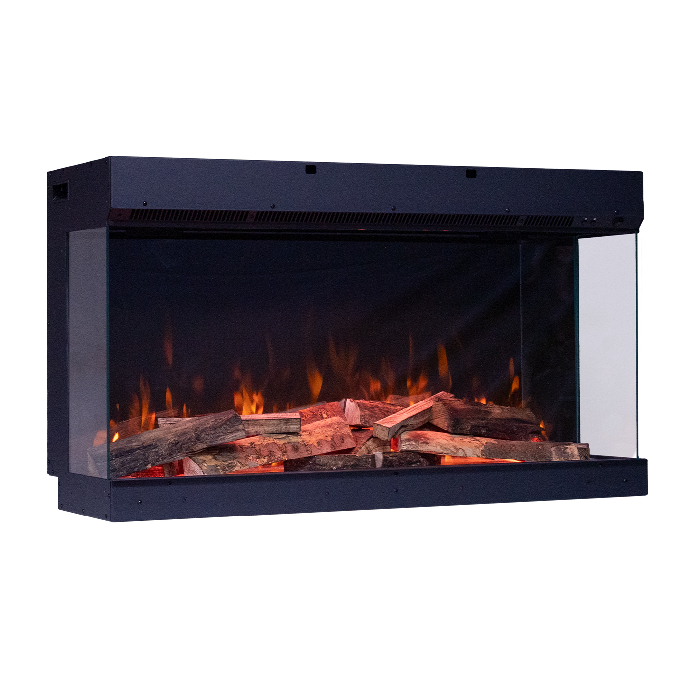 - Veelzijdig Ontwerp: Pas je haard aan aan je voorkeuren met drie verschillende installatieopties: frontaal, tweezijdig of driezijdig. Ongeacht je ruimte, integreert onze haard naadloos in je interieur en voegt een vleugje elegantie en warmte toe.